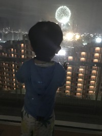 入院してから始めて、夜に病室から出て、花火の見える窓辺に連れていってもらいました。